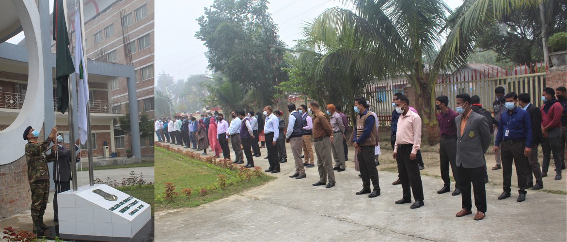 স্বাস্থ্য বিধি মেনে ও সামাজিক দুরত্ব বজায় রেখে উক্ত সভায় উপস্থিত ছিলেন বিশ্ববিদ্যালয়ের বিভাগীয় প্রধানগণ, শিক্ষক মন্ডলী, কর্মকর্তা ও কর্মচারীদের উপস্থিতিতে দিনের প্রথম পর্বের কর্মসূচি হিসেবে জাতীয় ও বিশ্ববিদ্যালয়ের পতাকা উত্তোলন ও সম্মান প্রদর্শন করেন বিশ্ববিদ্যালয়ের মাননীয় উপাচার্য ব্রিগেডিয়ার জেনারেল মোঃ মোস্তফা কামাল এবং ডেপুটি রেজিস্ট্রার একাডেমিক মোঃ আশরাফুল ইসলাম।