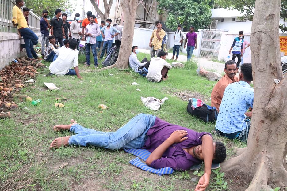 আজ শনিবার সকাল থেকে দুপুর পর্যন্ত রাজশাহীর শিরোইল বাস টার্মিনাল ও রেলওয়ে স্টেশনে গিয়ে দেখা যায়, কারও মাথার নিচে ব্যাগ, কারও কিছুই নেই। কেউ আবার আধশোয়া অবস্থায়। গরমের মধ্যে গাছের ছায়ায় দাঁড়িয়ে বসে আছেন কেউ কেউ। তাঁদের বেশির ভাগই চাঁপাইনবাবগঞ্জের বাসিন্দা। বিকল্প পথে রাজশাহীতে এসেছেন।